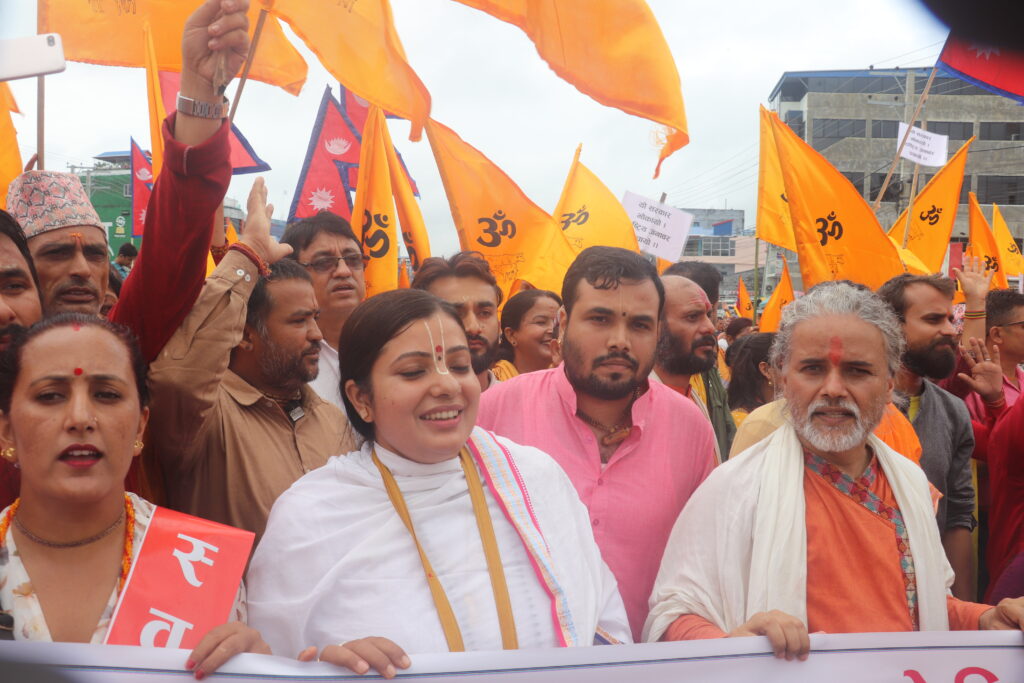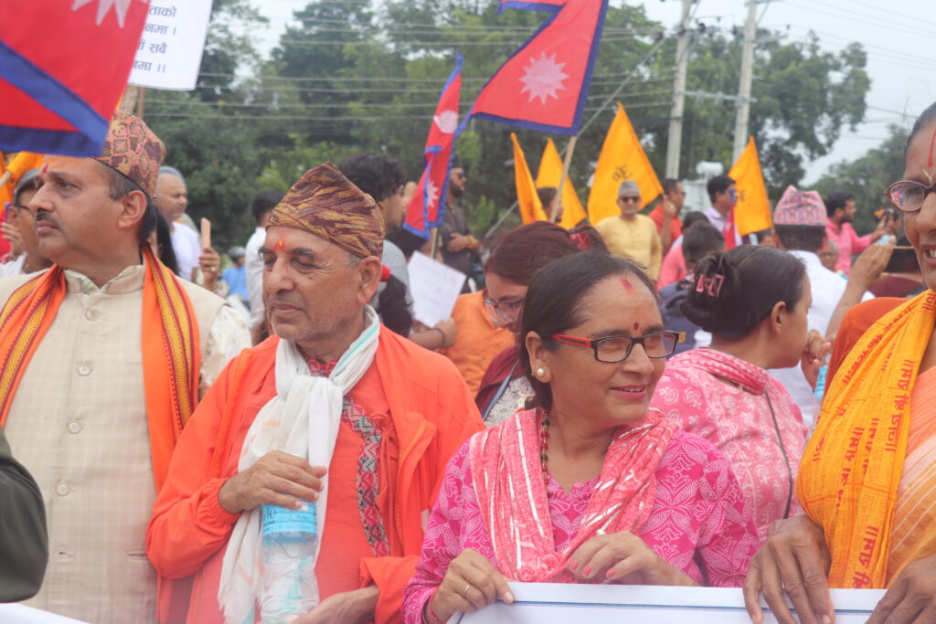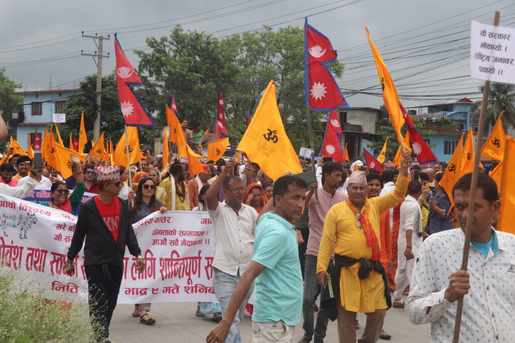 र्यालीमा सहभागीले ‘गौ हत्या गर्न पाइँदैन, धर्म परिवर्तन गर्न पाइँदैन, गौ हत्या गर्नेलाई कारबाही गर, गृहमन्त्री राजीनामा दे’ जस्ता नाराबाजी गरे। र्याली तरहराको पानीपियाबाट प्रहरीले अघि बढ्न नदिएपछि हिन्दुवादी धार्मिक अगुवाले सम्बोधन गरेर कार्यक्रम टुङ्ग्याए।