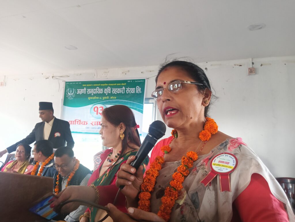 कृषि सहकारी संघ मोरङका उपाध्यक्ष शोभितमान पौडेलले सिमित स्रोत साधन तथा पूँजिका कारण शेयर सदस्यहरुको आवश्यकतालाई पूर्णरुपमा सम्बोधन गर्न नसकेतापनि क्षमताले भ्याएसम्म कृषि उपज तथा कृषि ब्यवसायिलाई नै प्रोत्साहन गर्नु पर्ने बताए।