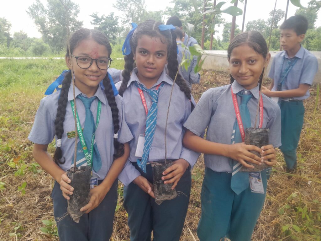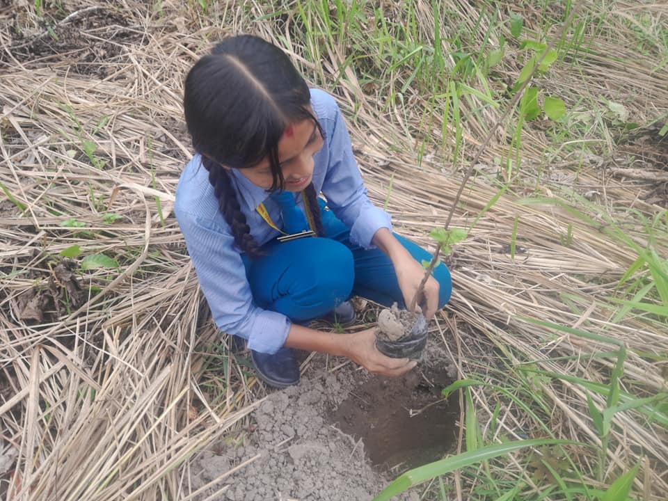 हिमालय एङ्ग्लिस स्कुलका विद्यार्थीहरूले रोपे हसिना सिमसारमा फलफूलका बिरुवा