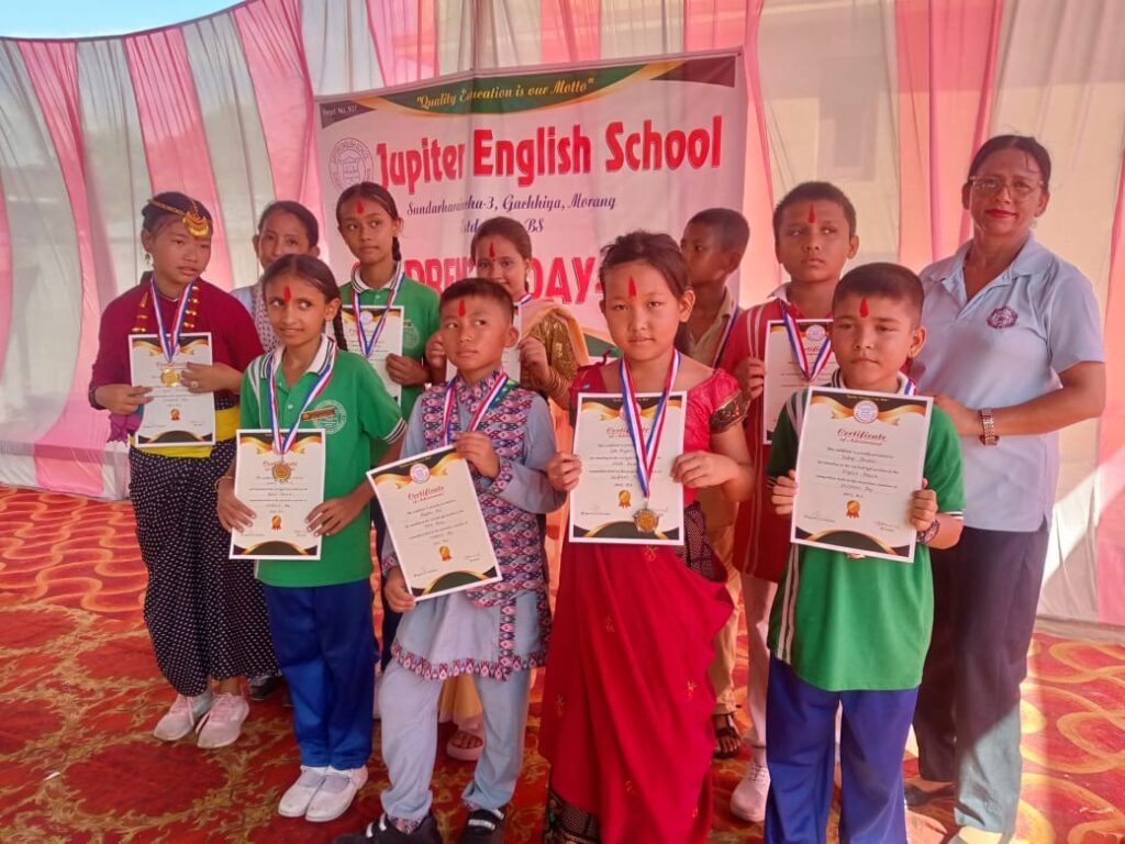 बिराटनगर : मोरङको सुन्दरहरैचा नगरपालिका – ३ गछियामा रहेको जुपिटर इंङ्लिस स्कुलले बाल दिवसको अवसर पारेर पूर्व विद्यार्थी प्राश्ना पराजुलीलाई सम्मान गरेको छ। जुपिटर इंङ्लिस स्कुलबाट २०७८ सालको माध्यमिक शिक्षा परीक्षा (एसईई) मा उत्कृष्ट अङ्क ल्याई उच्च शिक्षा अध्ययनको क्रममा नेपाल मेडिकल काउन्सिलबाट लिईएको २०८१ को एमबीबीएसको प्रवेश परीक्षामा पूर्ण छात्रवृति प्राप्त गरी स्कुलको नाम राख्न सफल भएको भन्दै पराजुलीलाई सम्मान गरिएको स्कुलका प्रिन्सिपल हरिशचन्द्र ढकालले बताए।