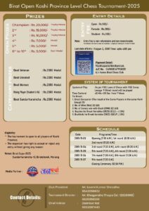 विराट ओपन कोशी प्रदेश स्तरीय चेस प्रतियोगिता फागुन ३ देखि ७ गतेसम्म