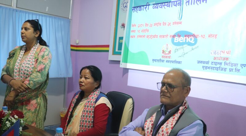 सुन्दरहरैंचा नगरपालिका वडा नं. १० स्थित हातेमालो बहुउद्देश्यीय सहकारी संस्था लिमिटेडको भवनमा ५ दिने सहकारी व्यवस्थापन तालिम सुरु भएको छ। तालिम सुन्दरहरैंचा नगरपालिकाको सहकार्यमा जनचर्चा टाइम्स मिडिया एण्ड एडभरटाइजिङ प्रा.लिको आयोजनामा सुरु गरिएको हो।